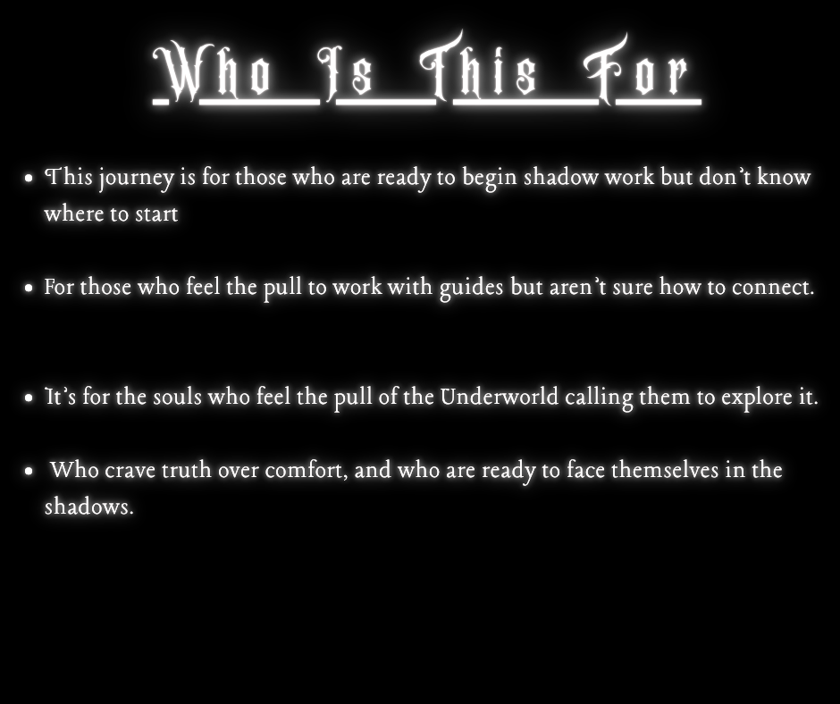 This is where shadow becomes sacred. Where you meet the ancient spirits who dwell in the dark and remember the truth of your own power.